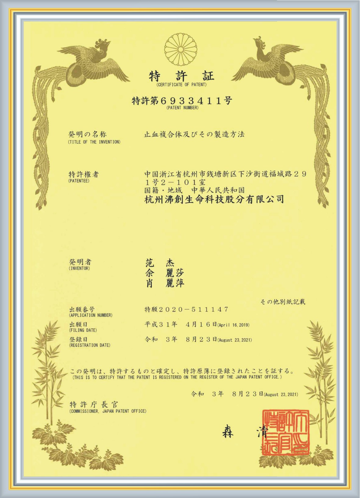 公司“第一代沸石止血技術”獲得發(fā)明專利